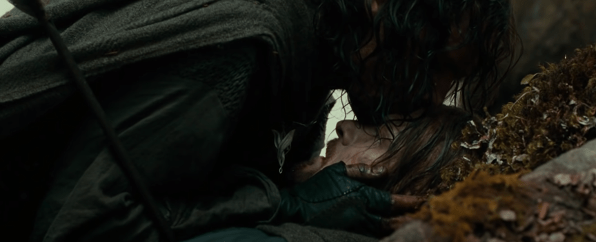 The simple act of a kiss to forehead and staying with the dying Boromir creates a moment of raw emotion and tender vulnerability, challenging the patriarchal expectations of manliness and fraternising.
